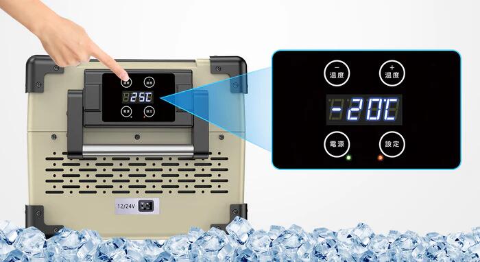 明るい屋外でもはっきり見やすいLCDタッチパネルを搭載、冷蔵庫の温度をリアルタイムで表示し、触れるだけで食材に合わせて1℃刻みの細やかな温度調節が可能です。それに、電源を切っても温度設定の記録を保存できるメモリー機能付き、次に使い始める時に最初から設定し直す必要がないので便利です。庫内ライトもついているので、夜間や暗い場所でも庫内を見渡せます。