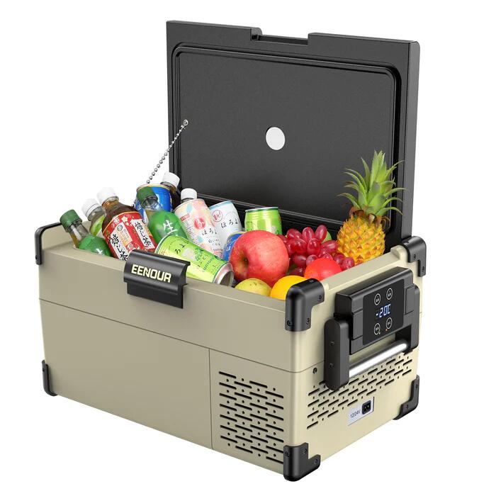 家庭用冷蔵庫と同様にコンプレッサーを搭載、ペルチェ式より速く冷凍ができ、25℃の庫内温度から-20℃までわずか55分で冷却可能です。最低-20℃まで急速冷凍できるから、飲み物はもちろん、アイスクリームや生鮮品も持ち運ぶことができます。運転モードは2種類設定されており、冷却速度が速く、冷凍時間を短縮できるHHモードと省エネ・節電ができるECOモードをお好みで選べます。